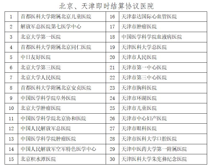 十、北京、天津開通即時(shí)結(jié)算協(xié)議醫(yī)院有哪些?